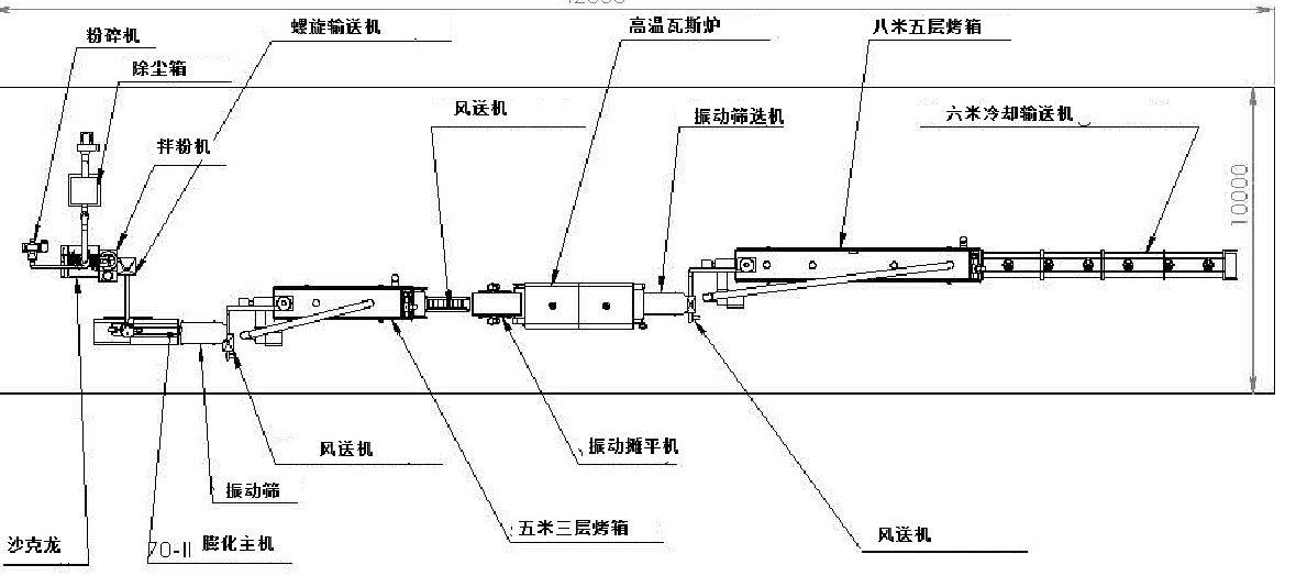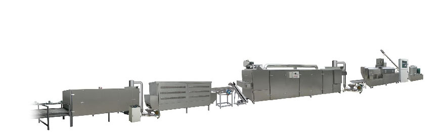 原料混合-擠壓造粒-振動冷卻-烘干-二次冷卻-高溫膨化-二次烘干-冷卻-包裝